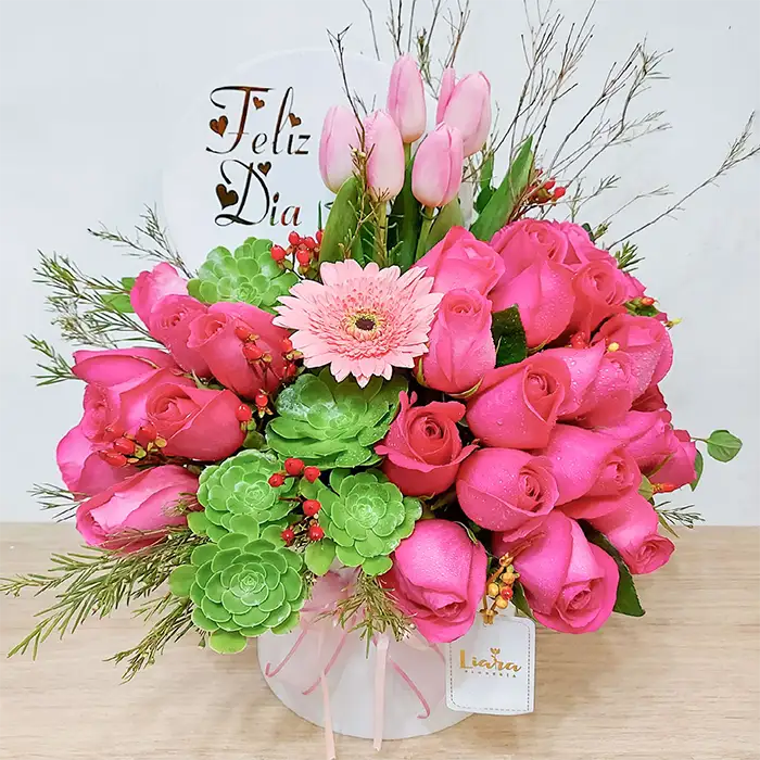 CM- box magic premium tulipanes y rosas verdes