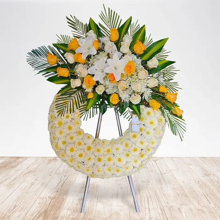 • corona fúnebre media luna