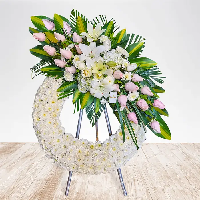 • corona fúnebre media luna