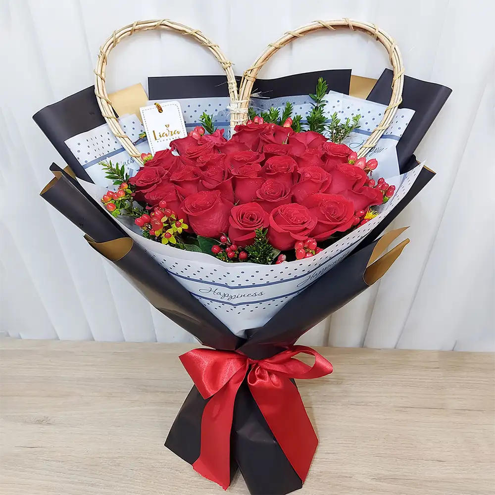 RM- ramo bouquet más corazón de mimbre